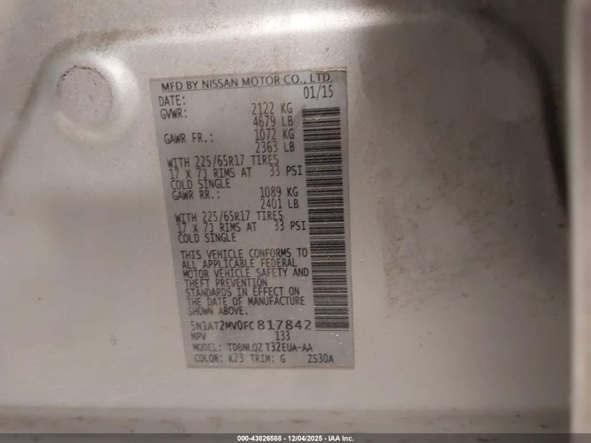 2015 NISSAN ROGUE 2015 року Бензин, 2.5, Полный привод, vin - 5N1AT2MV0FC817842 из США