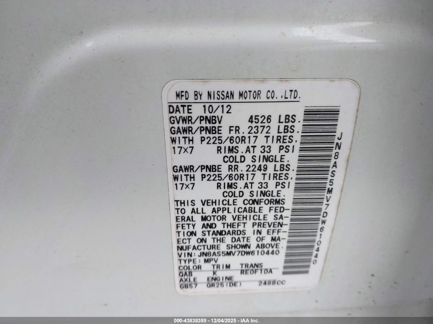 Цвет БелыйЦилиндры 4Привод Полный приводVIN JN8AS5MV7DW610440Состояние Заводится и едет (проверено)Повреждения Обычный износ AutoRIA