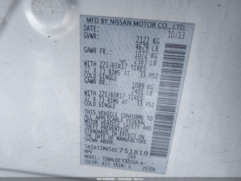2014 NISSAN ROGUE S