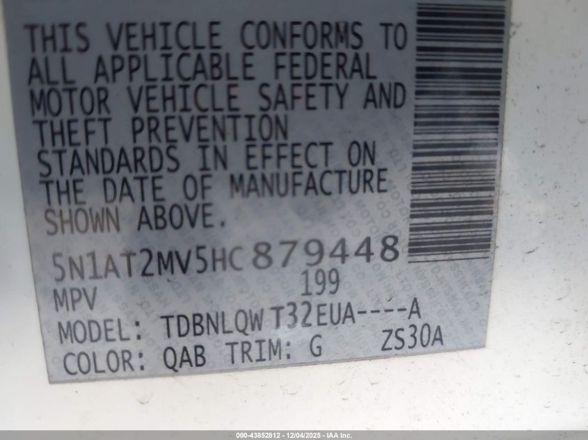 2017 NISSAN ROGUE 2017 року Бензин, 2.5, Полный привод, vin - 5N1AT2MV5HC879448 из США