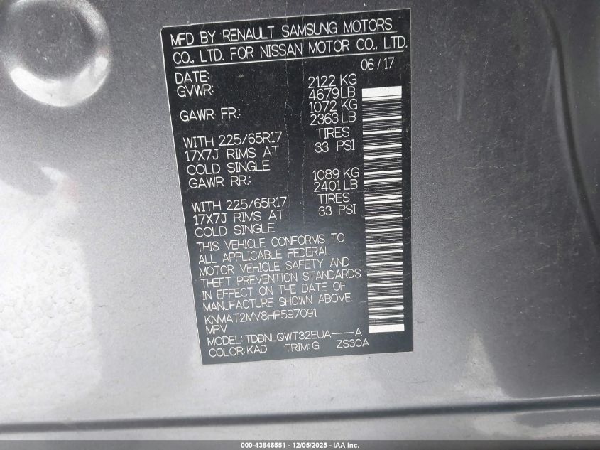 2017 NISSAN ROGUE 2017 року Бензин, 2.5, Полный привод, vin - KNMAT2MV8HP597091 из США