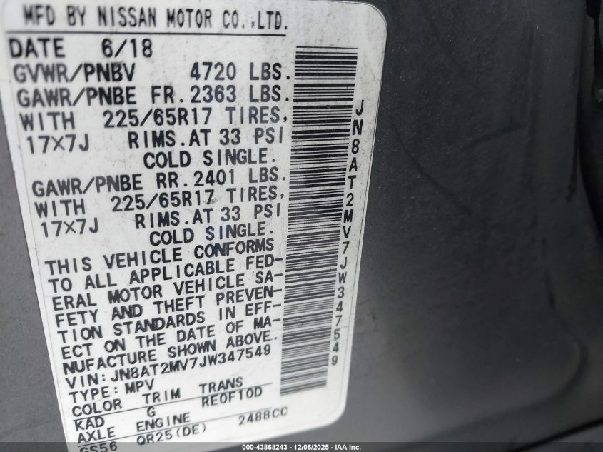 2018 NISSAN ROGUE 2018 року Бензин, 2.5, Полный привод, vin - JN8AT2MV7JW347549 из США