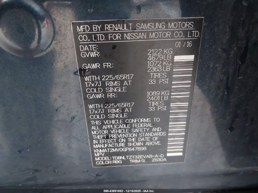 2016 NISSAN ROGUE 2016 року Бензин, 2.5, Полный привод, vin - KNMAT2MV0GP647898 из США