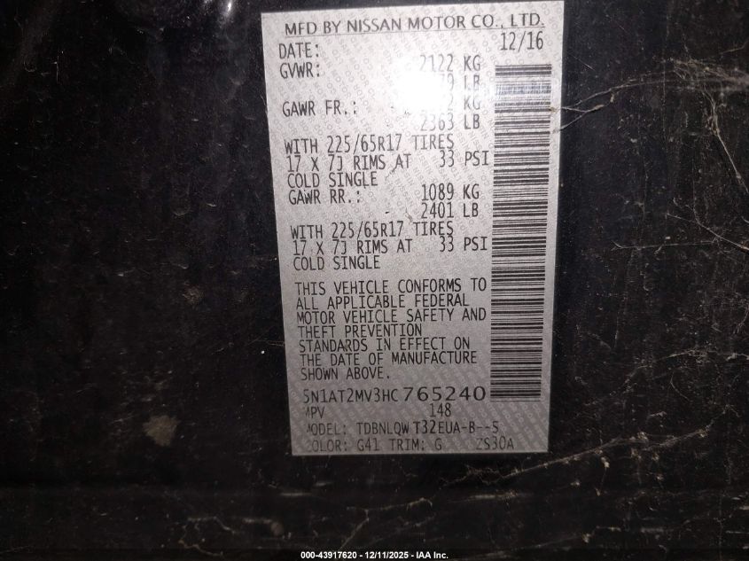 2017 NISSAN ROGUE 2017 року Бензин, 2.5, Полный привод, vin - 5N1AT2MV3HC765240 из США