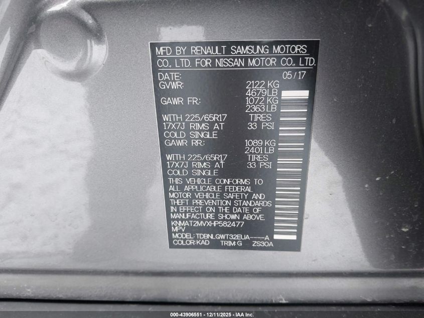 2017 NISSAN ROGUE 2017 року Бензин, 2.5, Полный привод, vin - KNMAT2MVXHP582477 из США