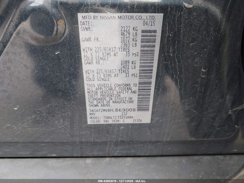 2015 NISSAN ROGUE 2015 року Бензин, 2.5, Полный привод, vin - 5N1AT2MV8FC869008 из США