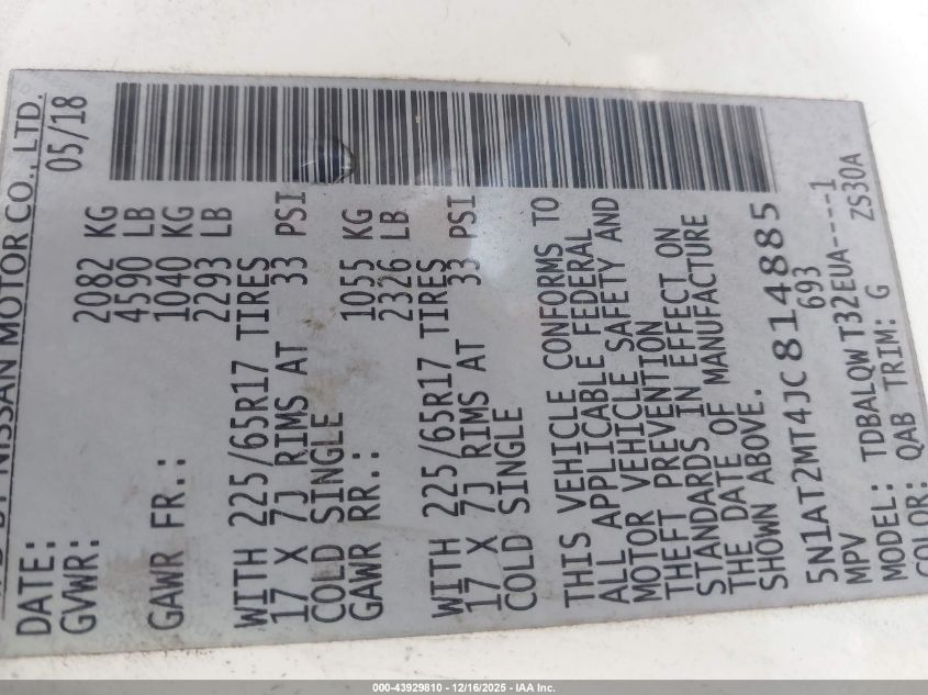 Цвет Цилиндры 4Привод Передний приводVIN 5N1AT2MT4JC814885Состояние НеизвестноПовреждения Опрокидывание AutoRIA