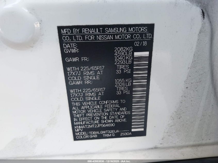 2018 NISSAN ROGUE 2018 року Бензин, 2.5, Передний привод, vin - KNMAT2MT2JP564690 из США