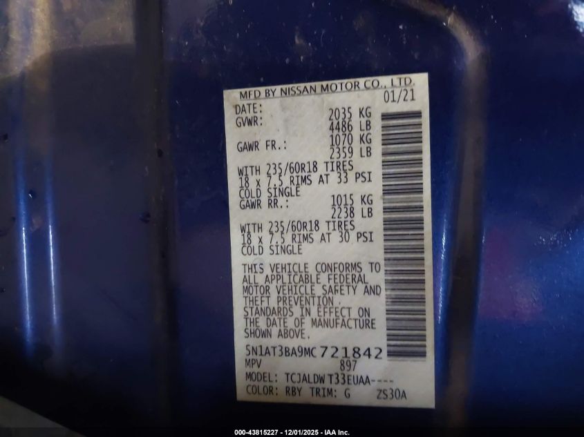 2021 NISSAN ROGUE 2021 року Бензин, 2.5, Передний привод, vin - 5N1AT3BA9MC721842 из США