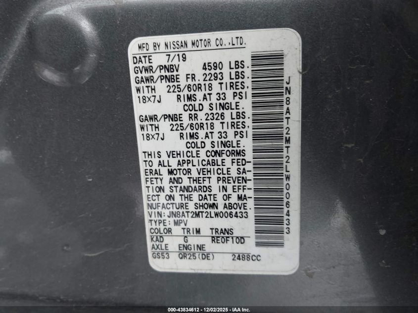 2020 NISSAN ROGUE 2020 року Бензин, 2.5, Передний привод, vin - JN8AT2MT2LW006433 из США