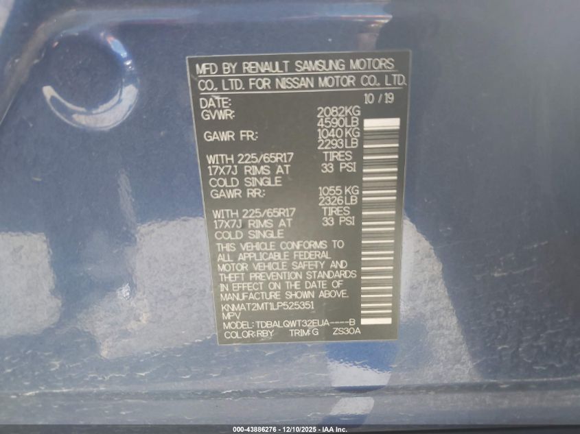 2020 NISSAN ROGUE 2020 року Бензин, 2.5, Передний привод, vin - KNMAT2MT1LP525351 из США