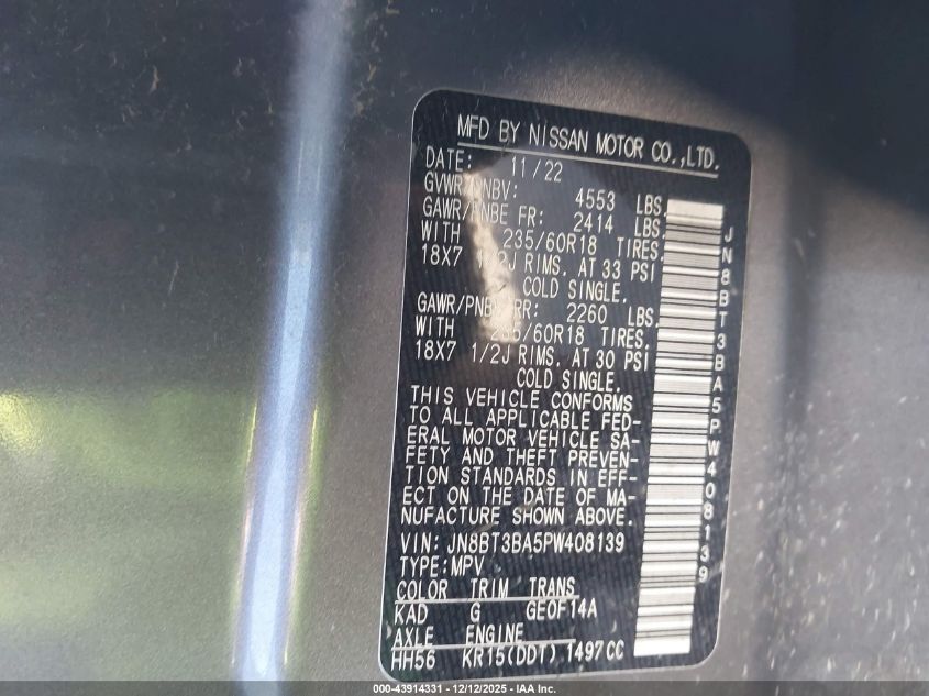 2023 NISSAN ROGUE 2023 року Бензин, 1.5, Передний привод, vin - JN8BT3BA5PW408139 из США