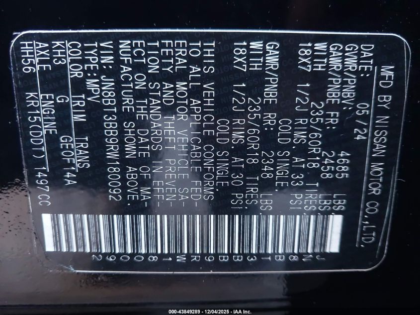 2024 NISSAN ROGUE 2024 року Бензин, 1.5, Полный привод, vin - JN8BT3BB9RW180092 из США