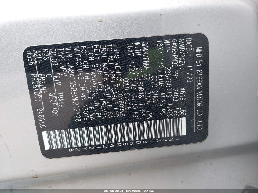 2021 NISSAN ROGUE 2021 року Бензин, 2.5, Полный привод, vin - JN8AT3BB8MW212728 из США