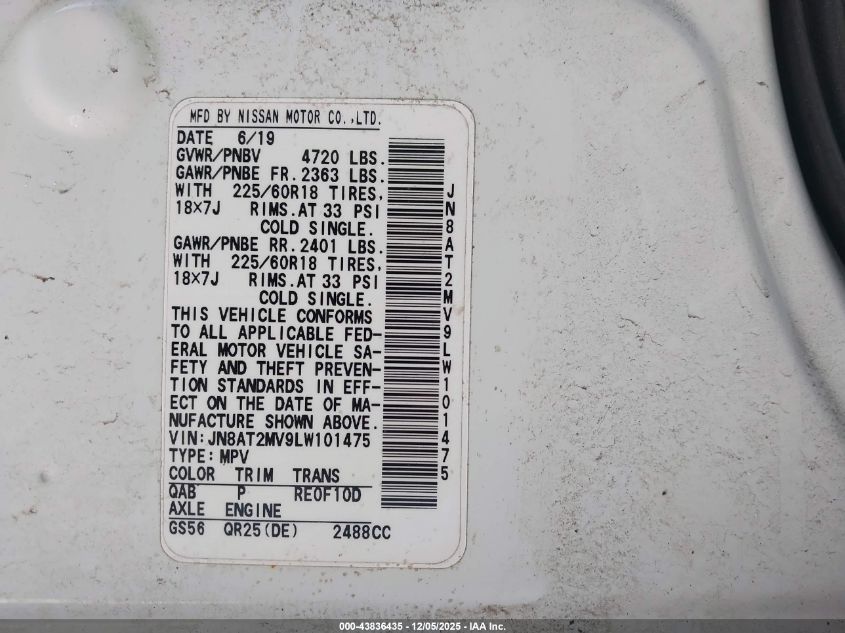 2020 NISSAN ROGUE 2020 року Бензин, 2.5, Полный привод, vin - JN8AT2MV9LW101475 из США