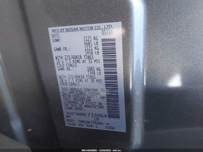 2024 NISSAN ROGUE 2024 року Бензин, 1.5, Полный привод, vin - 5N1BT3BB0RC733964 из США