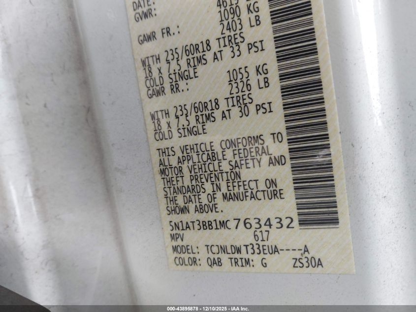 Цвет БелыйЦилиндры 4Привод Полный приводVIN 5N1AT3BB1MC763432Состояние СтационарноПовреждения Передняя или задняя AutoRIA