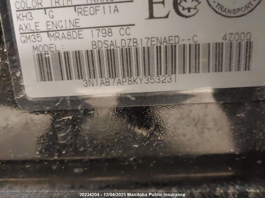 Цвет ЧерныйЦилиндры 4Привод Передний приводVIN 3N1AB7AP8KY353231Состояние СтационарноПовреждения ЗадняяДата аукциона 2025-12-10 AutoRIA