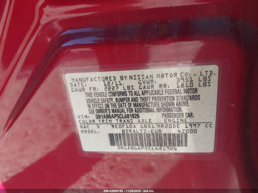 2012 NISSAN SENTRA 2012 року Бензин, 2.0, Передний привод, vin - 3N1AB6AP5CL681926 из США