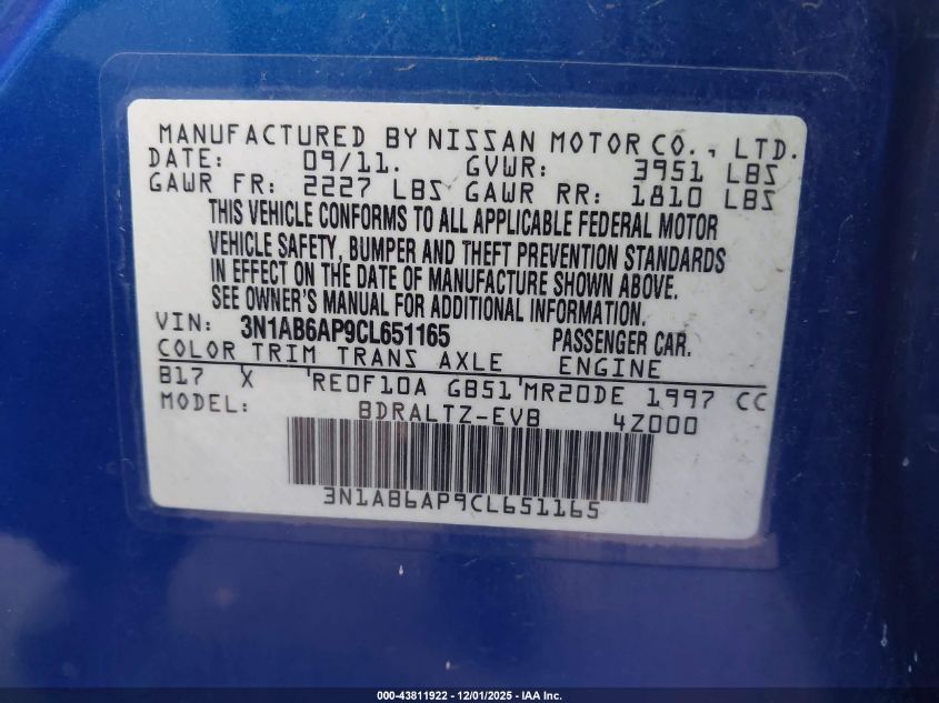 2012 NISSAN SENTRA 2.0