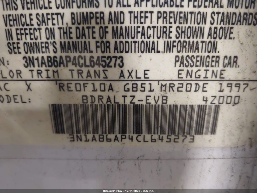 2012 NISSAN SENTRA 2012 року Бензин, 2.0, Передний привод, vin - 3N1AB6AP4CL645273 из США