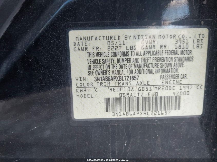 2011 NISSAN SENTRA 2011 року Бензин, 2.0, Передний привод, vin - 3N1AB6APXBL721657 из США
