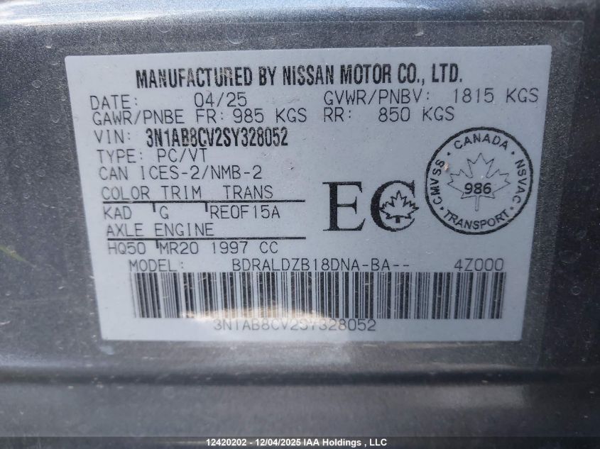 2025 NISSAN SENTRA 2025 року Бензин, , Передний привод, vin - 3N1AB8CV2SY328052 из США