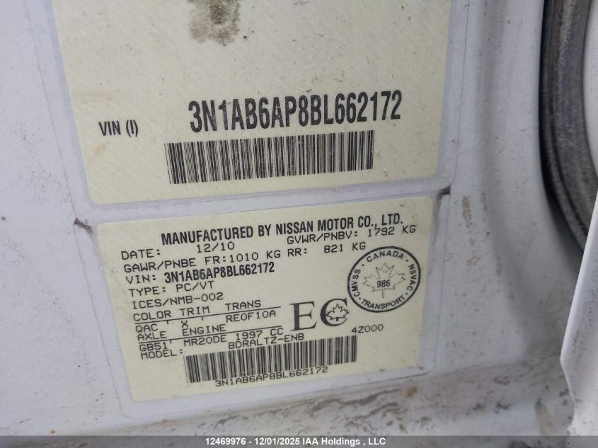 2011 NISSAN SENTRA 2011 року Бензин, , Передний привод, vin - 3N1AB6AP8BL662172 из США