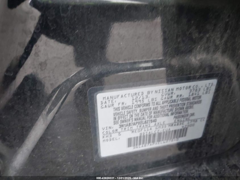 Цвет ЧерныйЦилиндры 4Привод Передний приводVIN 3N1AB7APXEL627840Состояние Заводится и едет (проверено)Повреждения Передняя леваяДата аукциона 2025-12-08 AutoRIA