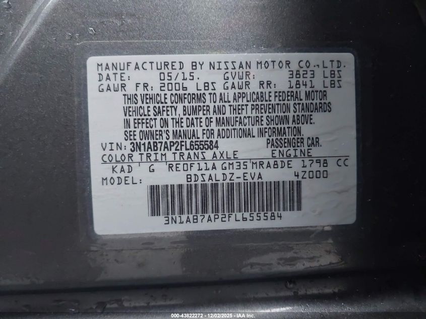 2015 NISSAN SENTRA 2015 року Бензин, 1.8, Передний привод, vin - 3N1AB7AP2FL655584 из США
