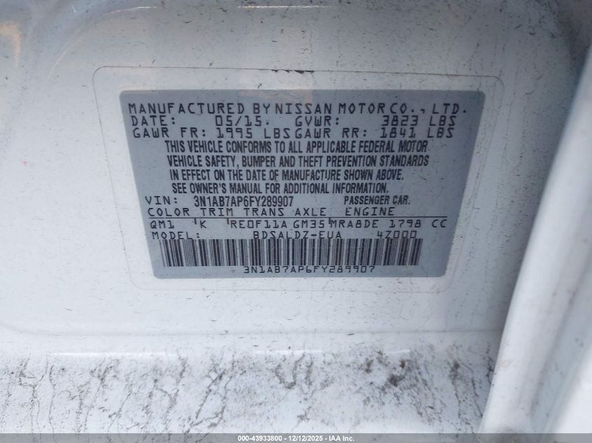 2015 NISSAN SENTRA 2015 року Бензин, 1.8, Передний привод, vin - 3N1AB7AP6FY289907 из США