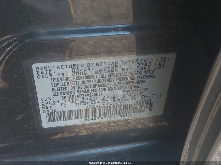 2014 NISSAN SENTRA 2014 року Бензин, 1.8, Передний привод, vin - 3N1AB7AP3EY246074 из США