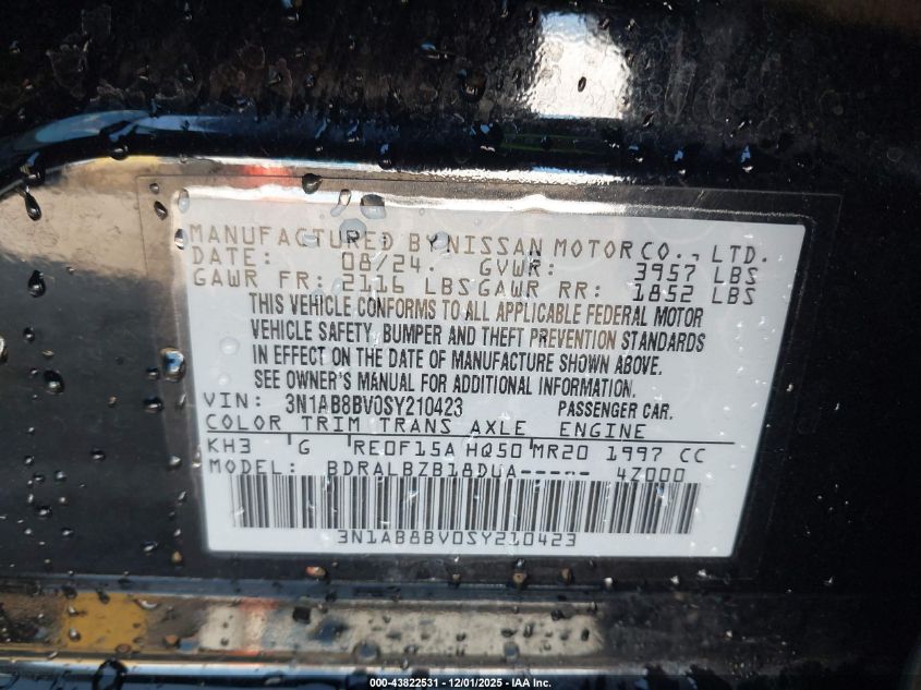 2025 NISSAN SENTRA 2025 року Бензин, 2.0, Передний привод, vin - 3N1AB8BV0SY210423 из США