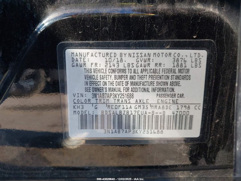 2019 NISSAN SENTRA 2019 року Бензин, 1.8, Передний привод, vin - 3N1AB7AP3KY251688 из США