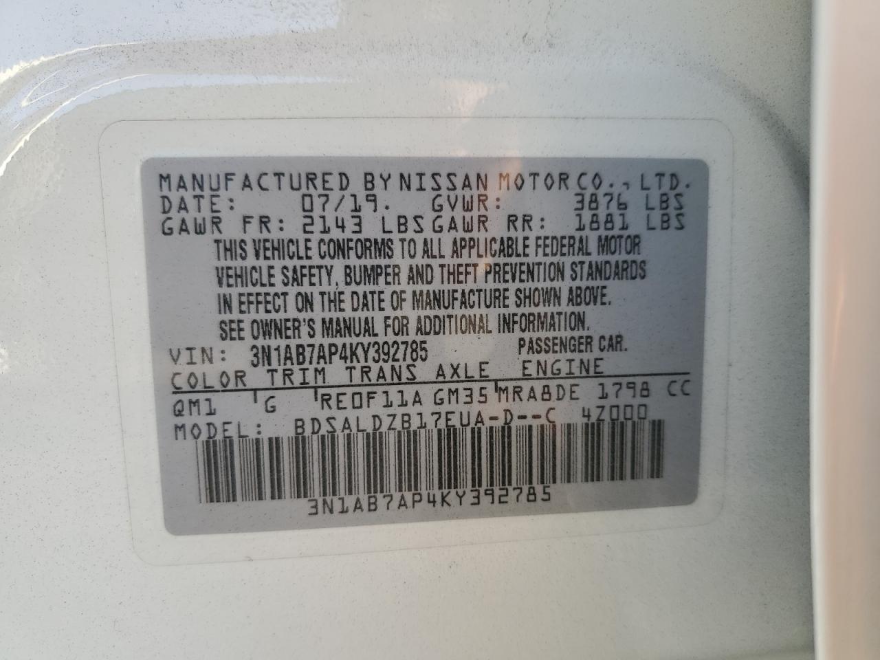 Цвет БелыйЦилиндры 4VIN 3N1AB7AP4KY392785Состояние Заводится и едет (проверено)Повреждения Задняя AutoRIA