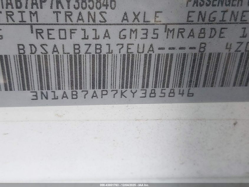2019 NISSAN SENTRA 2019 року Бензин, 1.8, Передний привод, vin - 3N1AB7AP7KY385846 из США