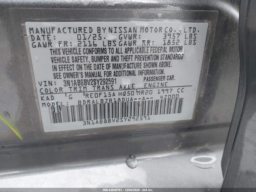 2025 NISSAN SENTRA 2025 року Бензин, 2.0, Передний привод, vin - 3N1AB8BV2SY292591 из США