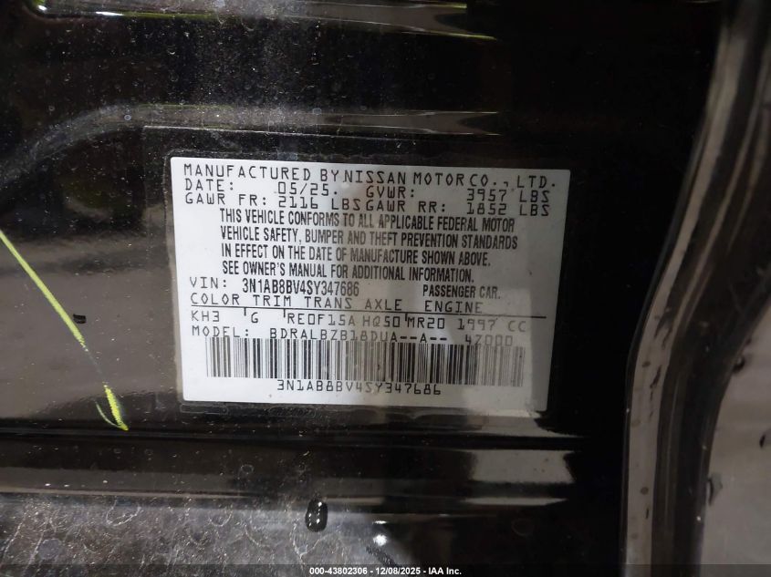2025 NISSAN SENTRA 2025 року Бензин, 2.0, Передний привод, vin - 3N1AB8BV4SY347686 из США