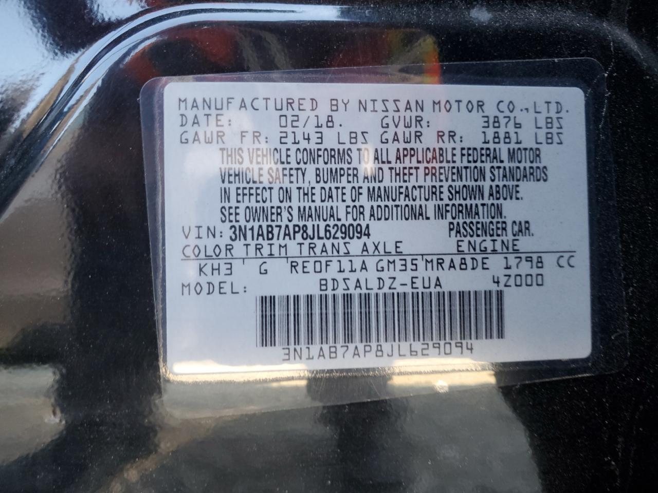 2018 NISSAN SENTRA 2018 року Бензин, 1.8, , vin - 3N1AB7AP8JL629094 из США