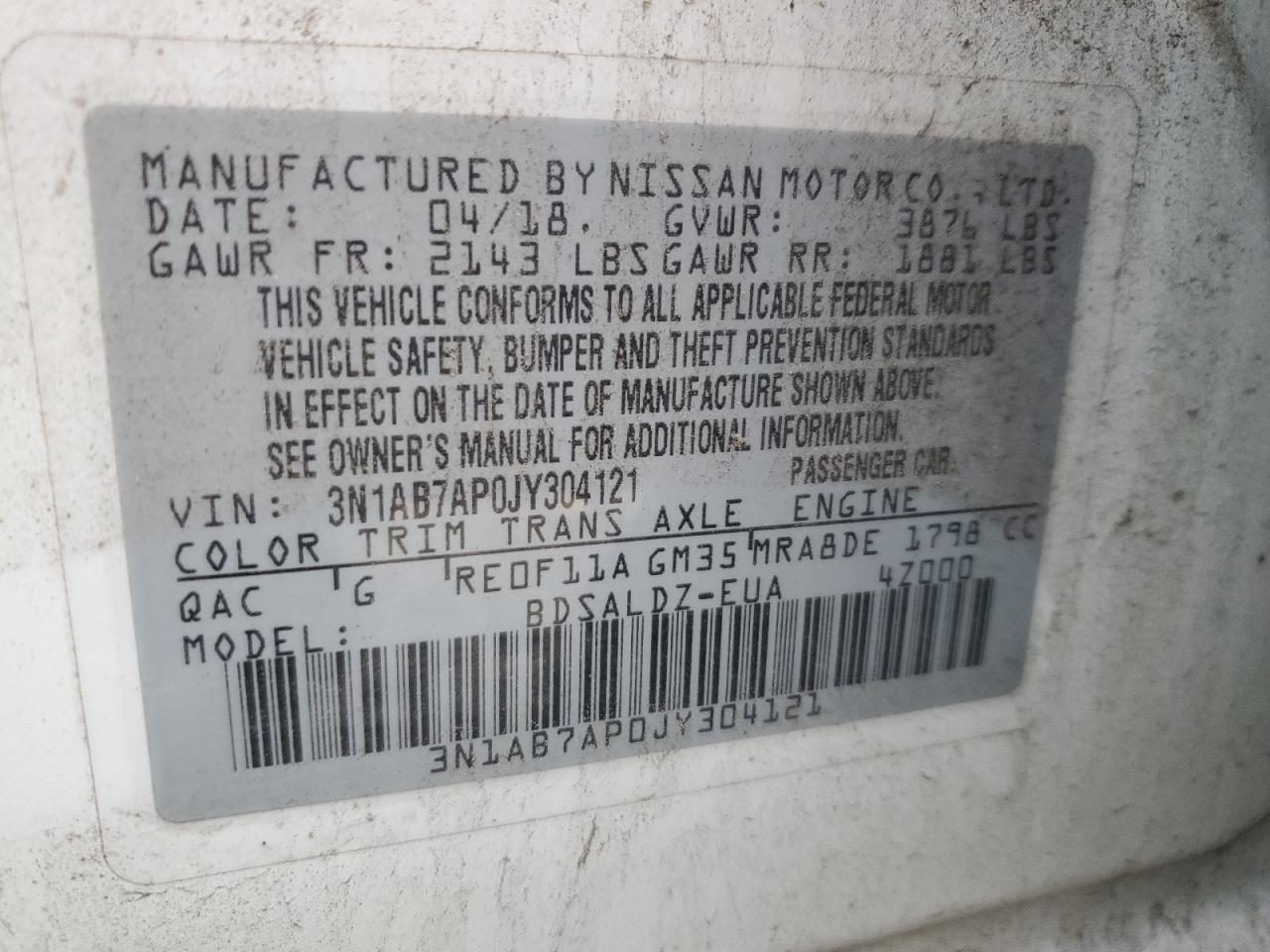 Цвет БелыйЦилиндры 4VIN 3N1AB7AP0JY304121Состояние НеизвестноПовреждения Низ AutoRIA