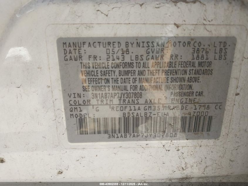 2018 NISSAN SENTRA 2018 року Бензин, 1.8, Передний привод, vin - 3N1AB7AP7JY307808 из США