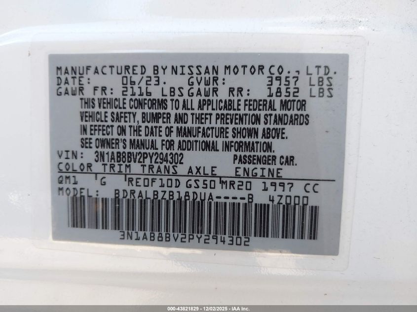 2023 NISSAN SENTRA 2023 року Бензин, 2.0, Передний привод, vin - 3N1AB8BV2PY294302 из США