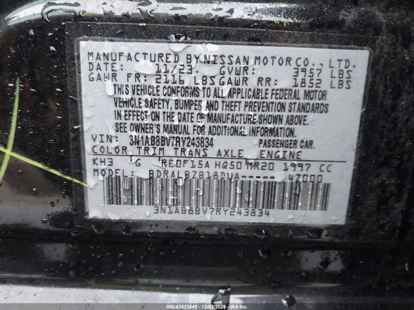 2024 NISSAN SENTRA 2024 року Бензин, 2.0, Передний привод, vin - 3N1AB8BV7RY243834 из США