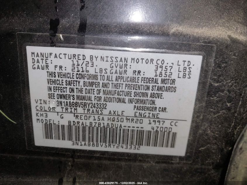 2024 NISSAN SENTRA 2024 року Бензин, 2.0, Передний привод, vin - 3N1AB8BV5RY243332 из США