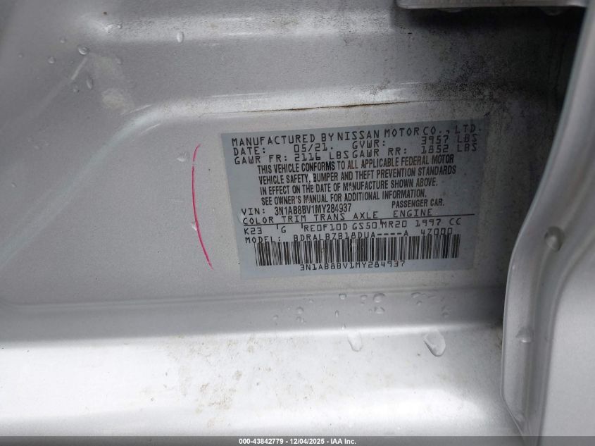 2021 NISSAN SENTRA 2021 року Бензин, 2.0, Передний привод, vin - 3N1AB8BV1MY284937 из США