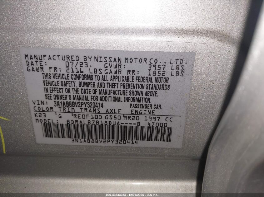 2023 NISSAN SENTRA 2023 року Бензин, 2.0, Передний привод, vin - 3N1AB8BV2PY320414 из США