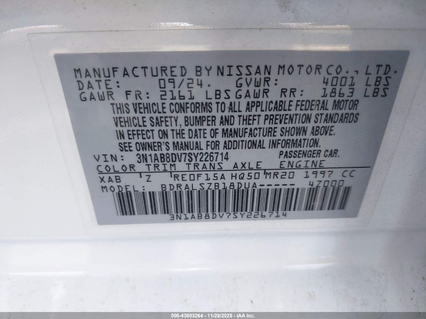2025 NISSAN SENTRA 2025 року Бензин, 2.0, Передний привод, vin - 3N1AB8DV7SY226714 из США
