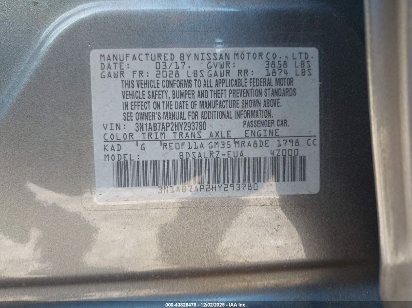 2017 NISSAN SENTRA 2017 року Бензин, 1.8, Передний привод, vin - 3N1AB7AP2HY293780 из США