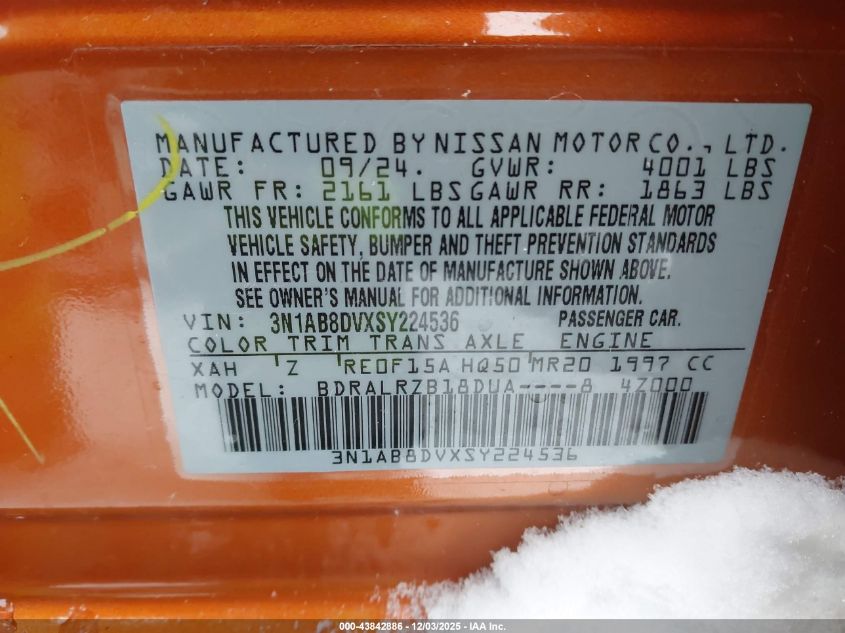 Цвет АпельсиновыйЦилиндры 4Привод Передний приводVIN 3N1AB8DVXSY224536Состояние СтационарноПовреждения Передняя или задняя