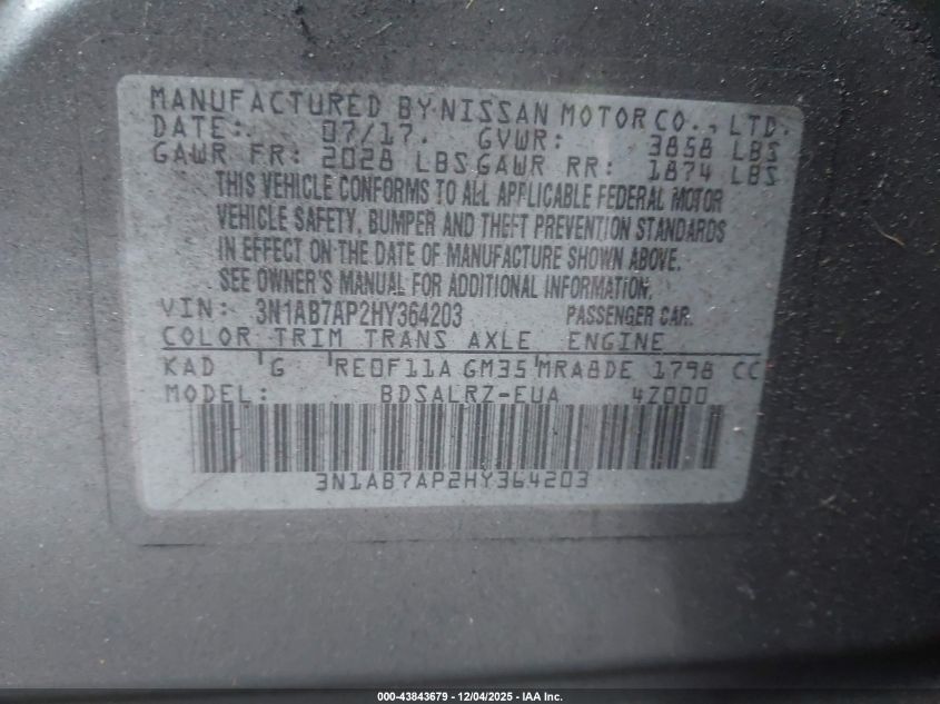 2017 NISSAN SENTRA S